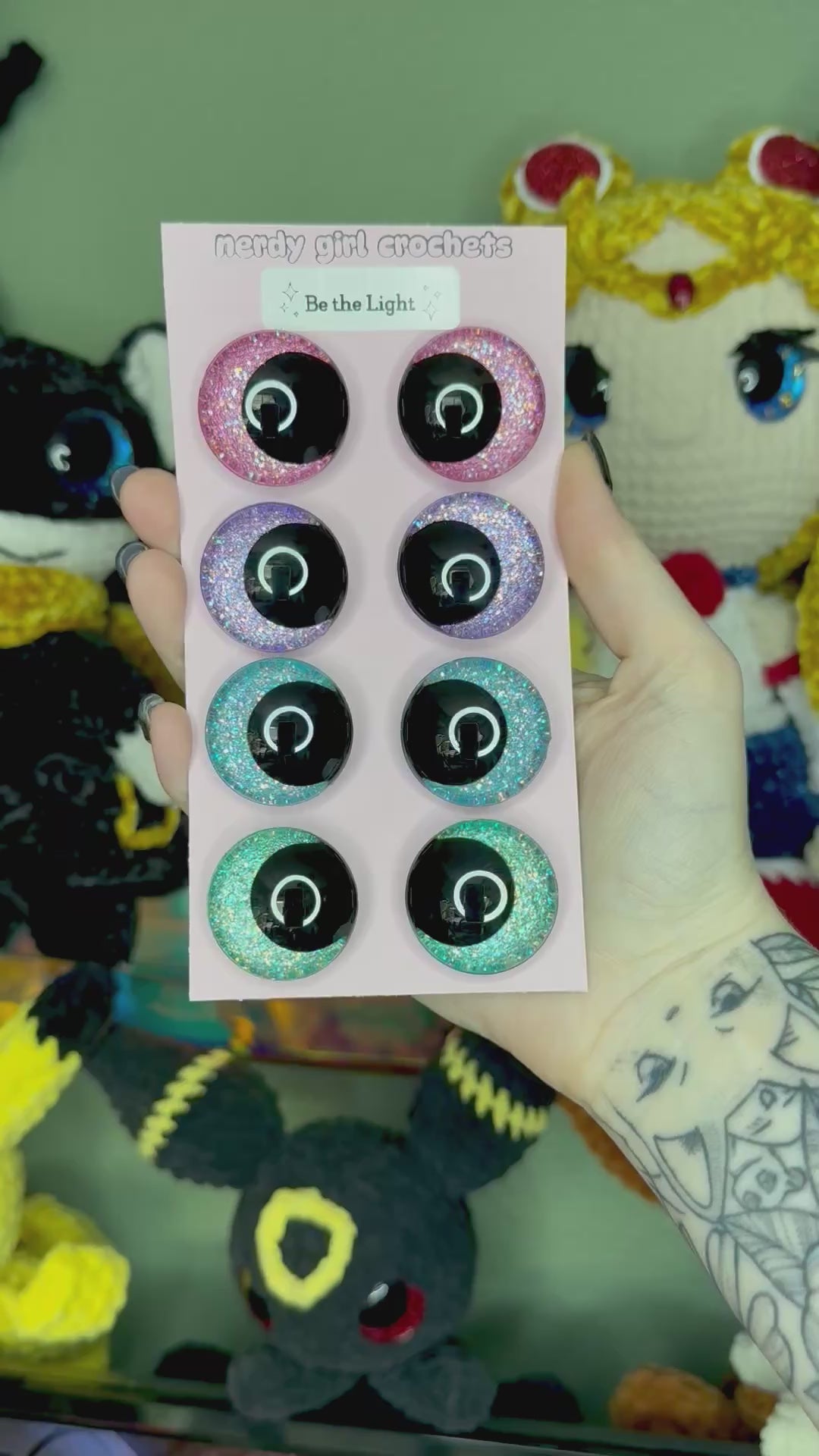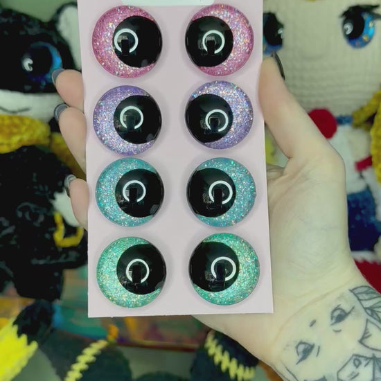 Please keep in mind that as these are hand painted safety eyes - resin on edges of eyes may occur. Because these are sinker eyes, please ensure you are prepared with the proper tool to insert them fully into your crocheted plushie. When inserted properly you will not see the edges of the eyes. Safety eyes are not intended for items given to children under 3 years of age.Items will ship within TWO WEEKS from time of purchase.