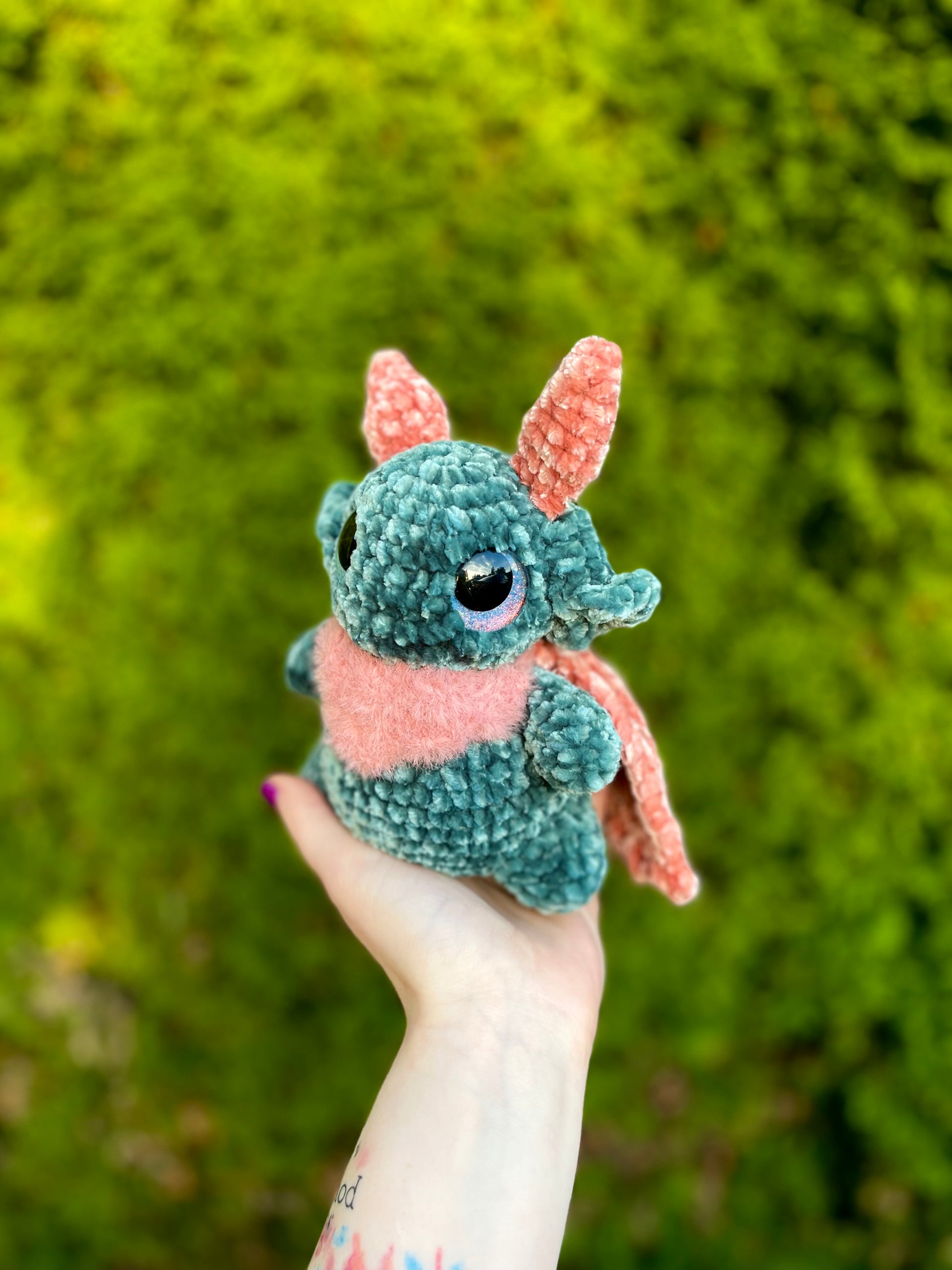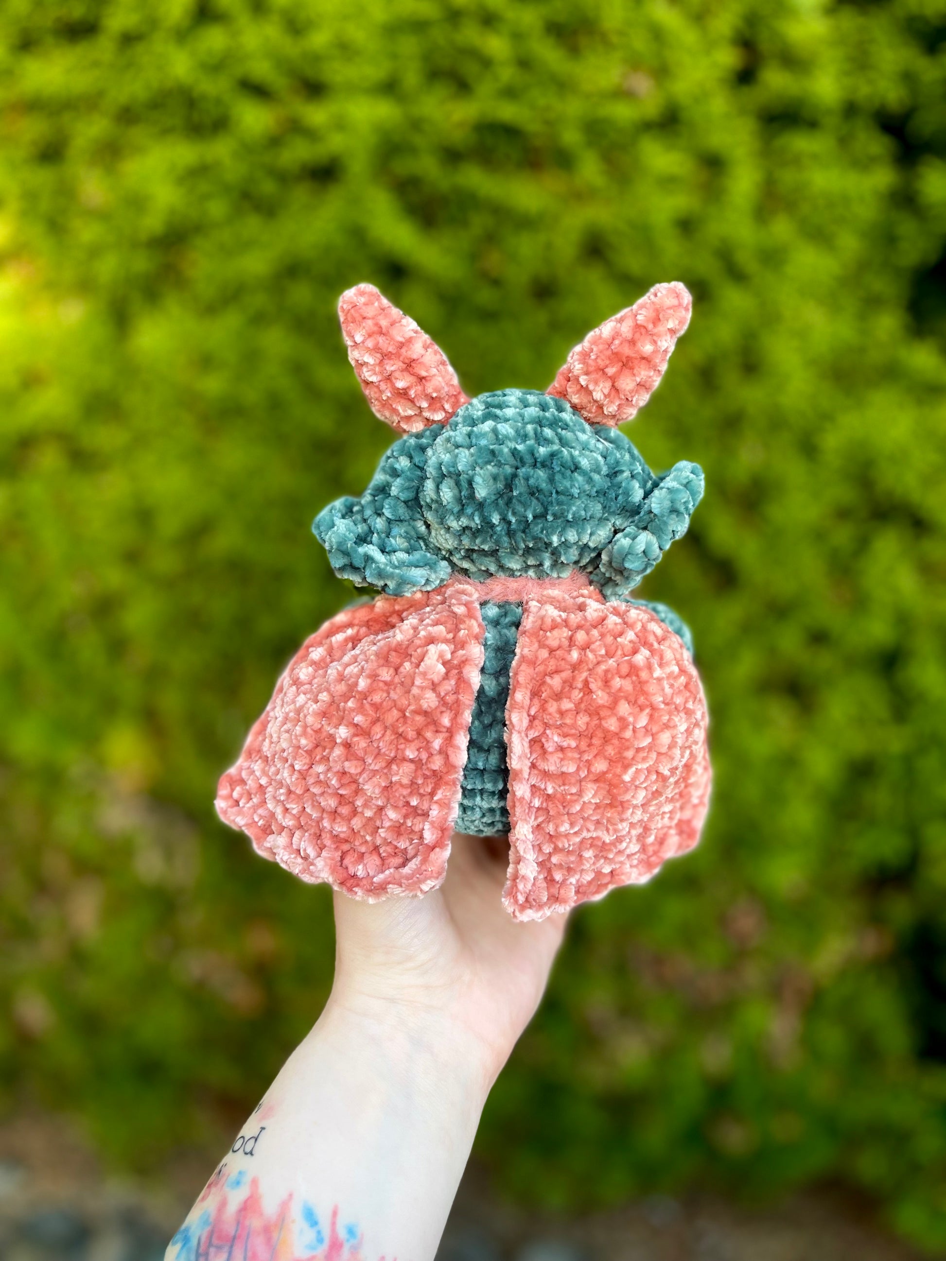 Moth man is made with soft velvet yarn and stands approximately 8 inches tall.