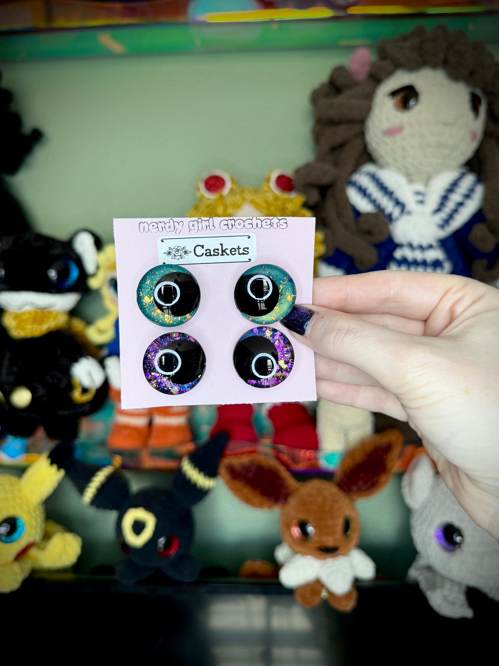 Lost In Echoes safety eyes are inspired by the song by the band Caskets! Lost In Echoes has always been a song that pumps me up, so I knew I wanted to include it in this drop! These eyes feature color shifts of green and blue.