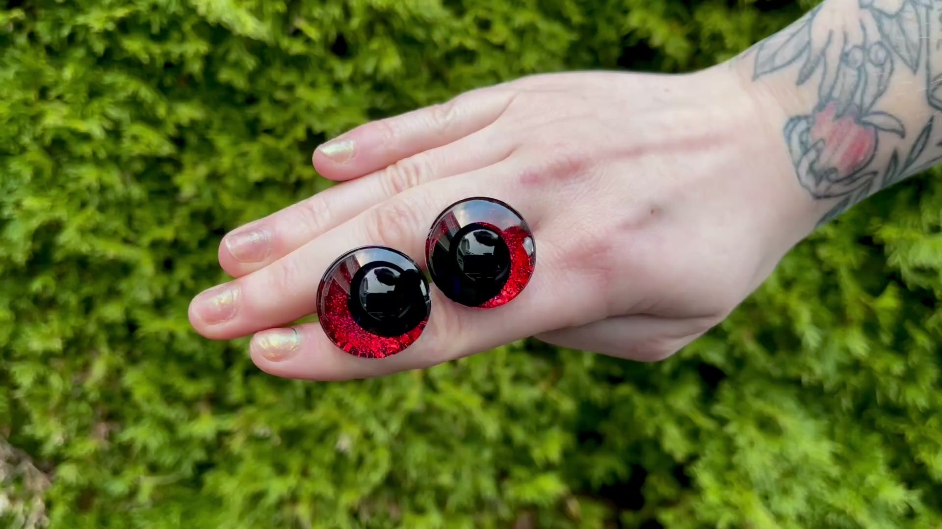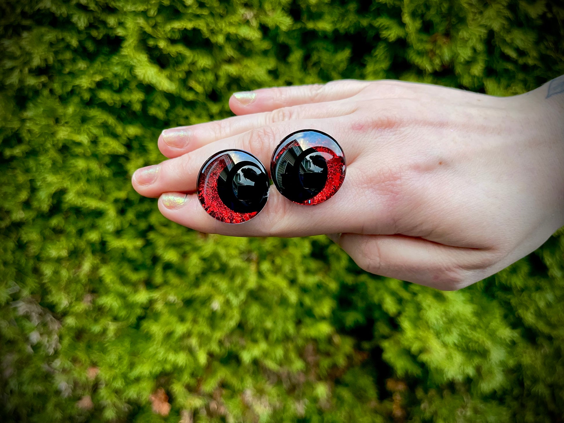 Hand painted sinker safety eyes. Please keep in mind that as these are hand painted, slight variations and resin on edges of eyes may occur. As these are sinker eyes, make sure you are prepared with the proper tool to insert them fully into your crocheted plushie. When inserted properly you will not see the edges of the eyes. Safety eyes are not intended for items given to children under 3 years of age.