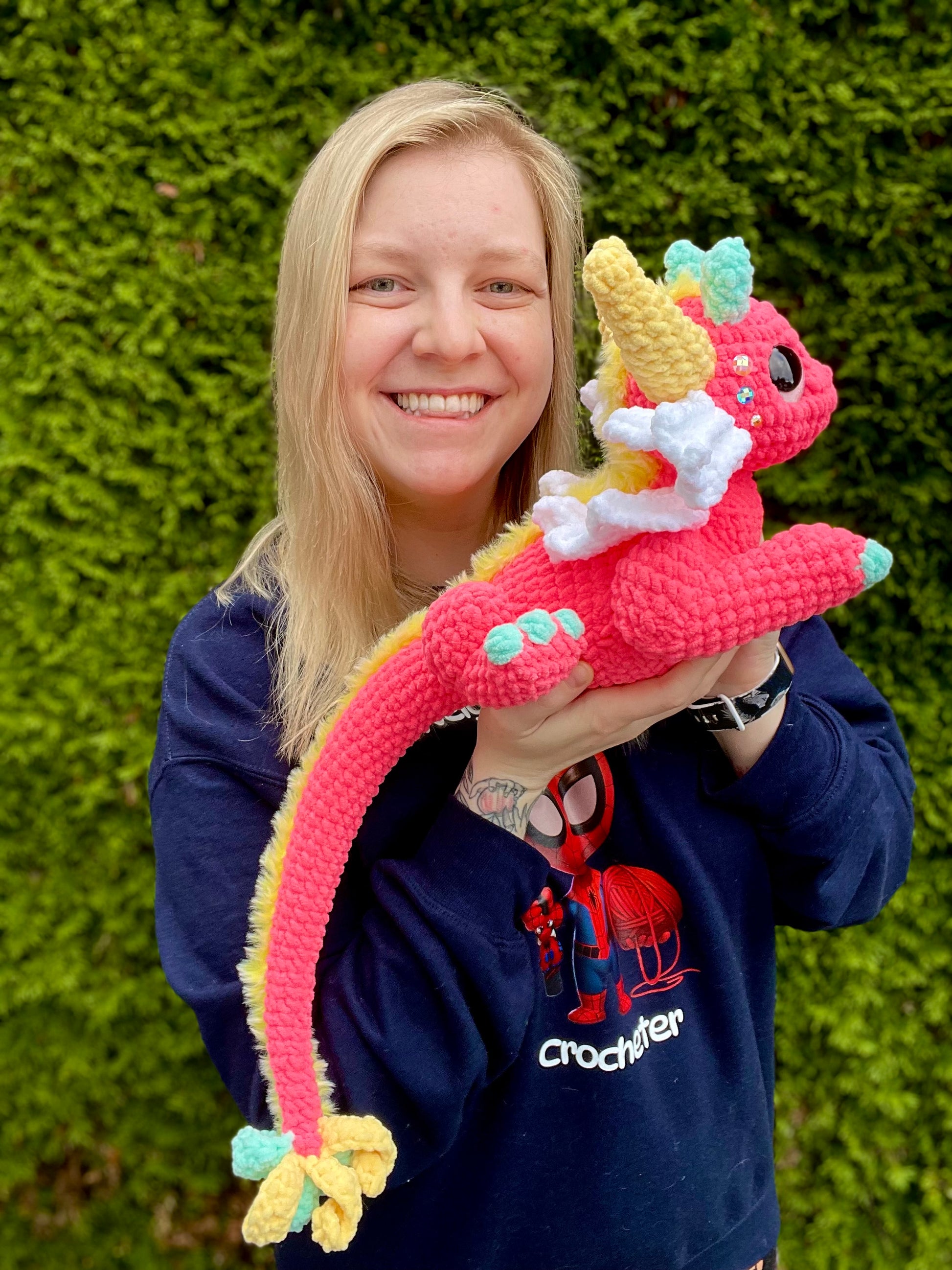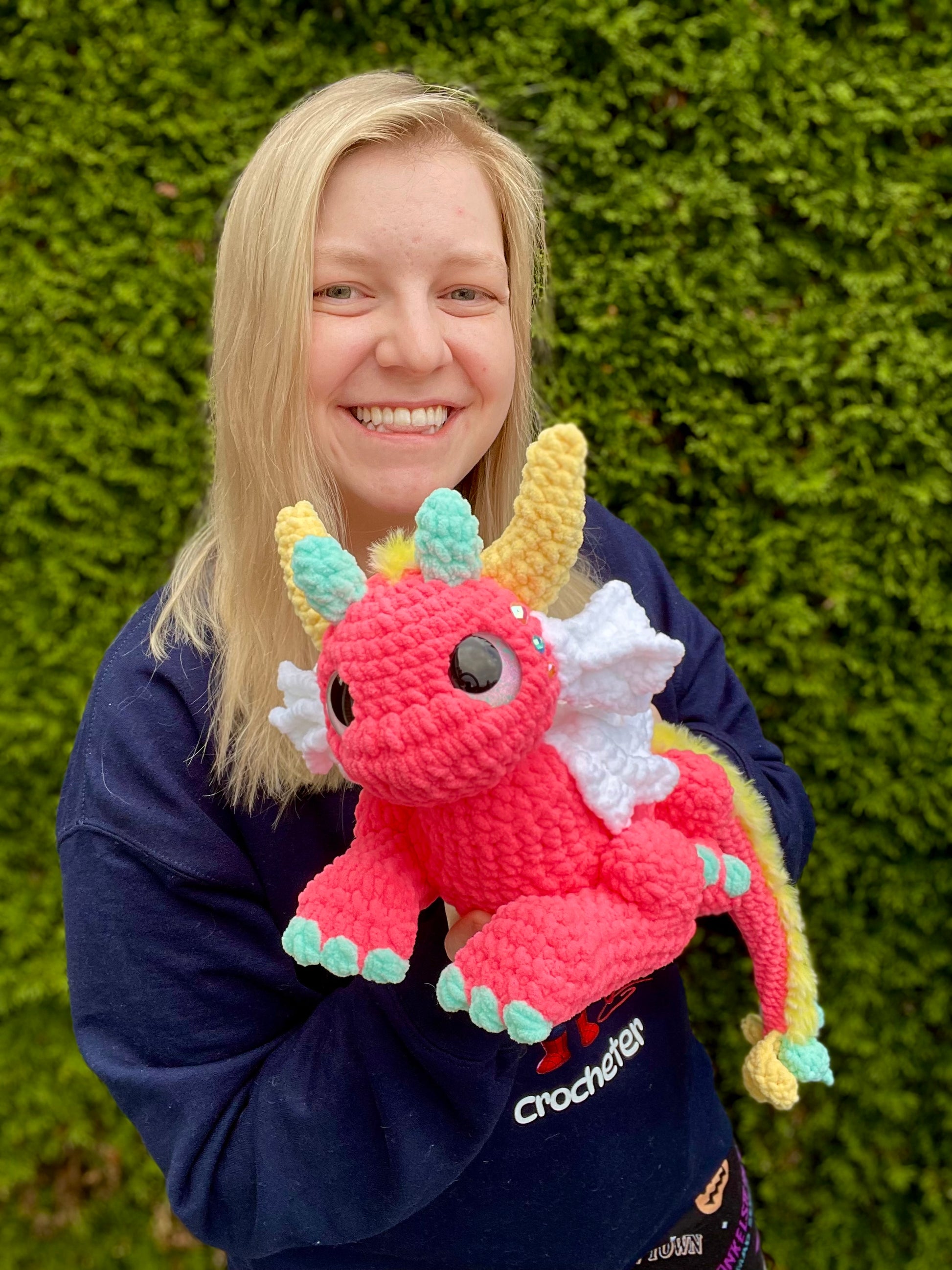 Revie is made with soft posh and fur yarn and measures approximately 26 inches in length.