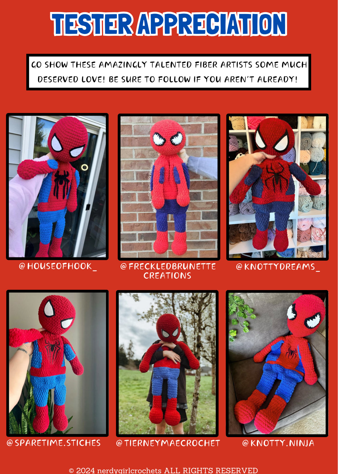 This is the first pattern of my Into the Snuggleverse collection. You can now make a giant web slinger snuggler for either you, friends, or kiddos to enjoy snuggling!